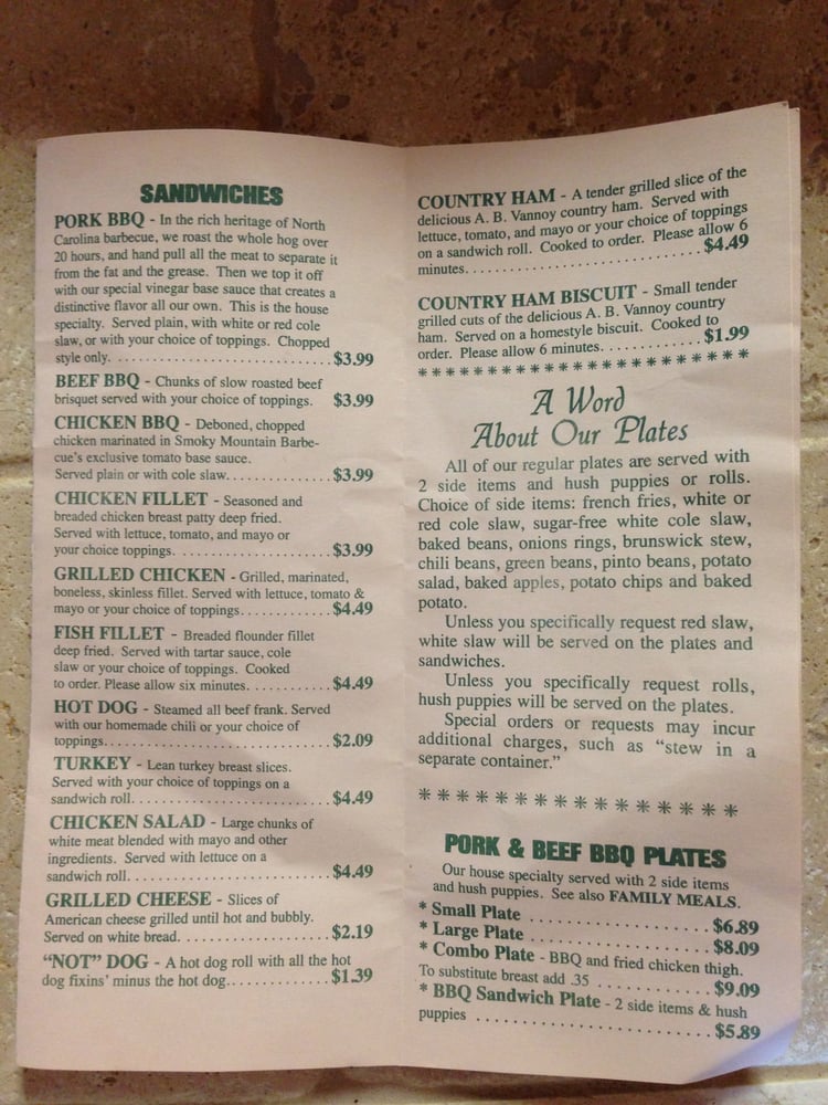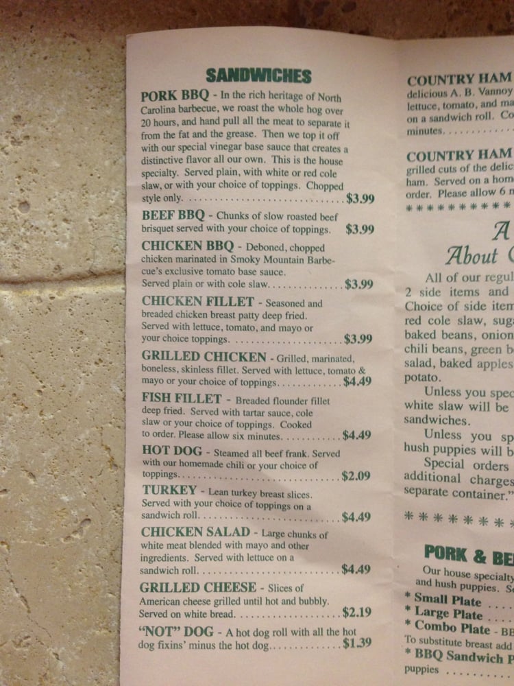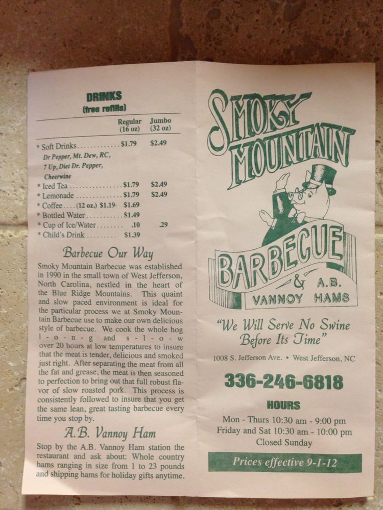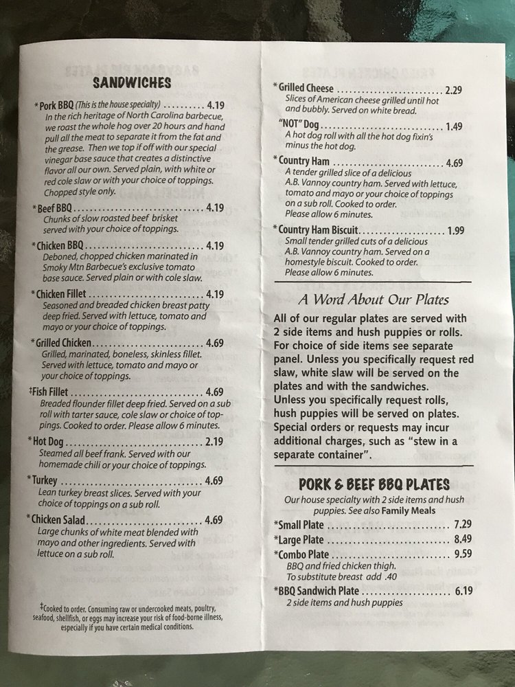 Smoky Mountain Barbecue, located in West Jefferson, NC, offers a variety of BBQ dishes with a traditional taste. Customers rave about the pork BBQ, hush puppies, and fried okra. Their menu includes country ham plates, baby back rib plates, and a child's menu with options like fried chicken and BBQ sandwiches. The cozy outdoor seating area allows for a relaxed dining experience. Reviewers praise the friendly staff and efficient service, even with the drive-through system. For those craving classic comfort food, Smoky Mountain Barbecue is a must-try spot. Don't miss out on their delicious ribs, sweet potato casserole, and hush puppies. With a mix of traditional flavors and welcoming atmosphere, this gem of a restaurant is a definite recommendation for BBQ enthusiasts.